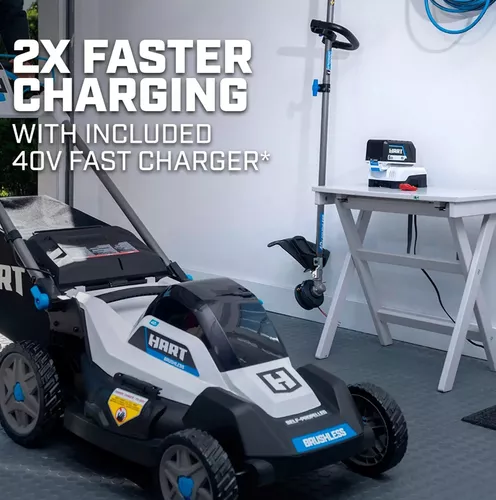 *Funciona con todas las baterías HART de 40 V. Incluye: (1) cortacésped autopropulsado de 40 V y 20 pulgadas, (1) batería de iones de litio de 40 V y 6,0 Ah, (1) cargador rápido de 40 V, (1) bolsa para recoger césped, (1) conducto de descarga lateral, (1) llave de arranque , (1) Tapón para abono y (1) Manuales del operador. Descargo de responsabilidad: *En comparación con el cargador estándar de 1,5 A
