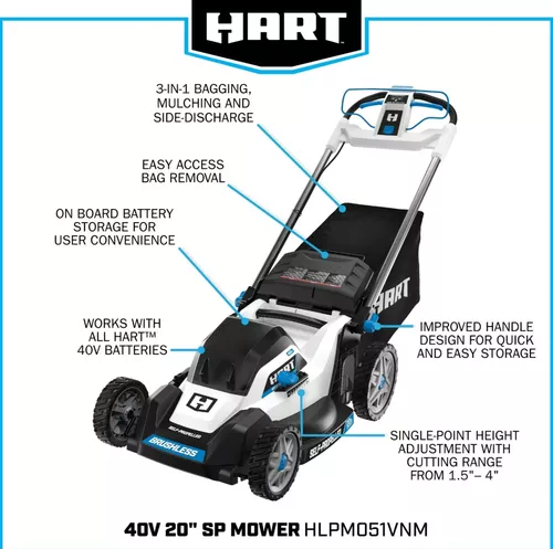 Podadora Hart 3en1 Auto Propulsado Electrico con Bateria 40v y Cargador